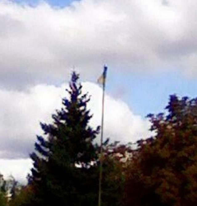 «Флаг Украины на флагштоке перед стадионом, 27.09.17 г.», — отмечают местные жители и также публикуют соответствующие фото.