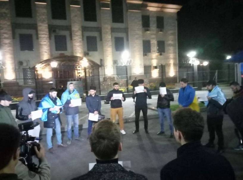 В ночь на 28 сентября в Киеве возле посольства РФ прошла акция в поддержку осужденного замглавы Меджлиса.