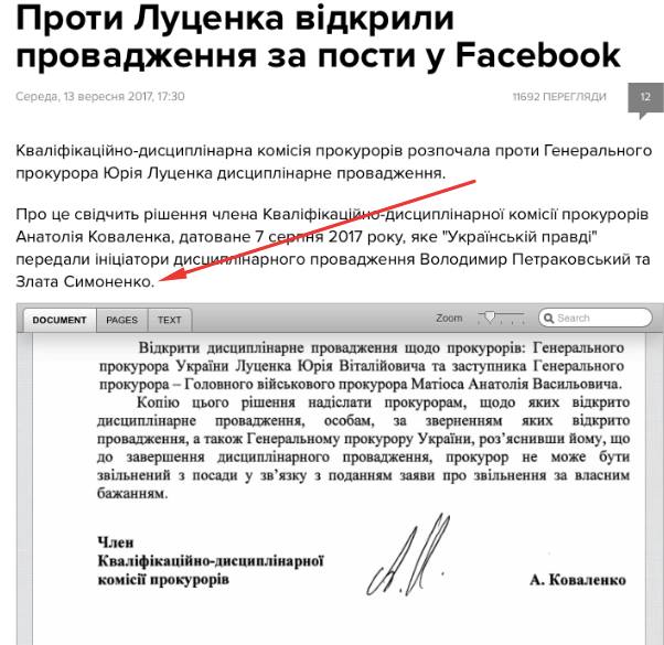За словами журналіста, Злату Симоненко наразі прилаштували у новостворену Кваліфікаційно-дисциплінарну комісію прокурорів.