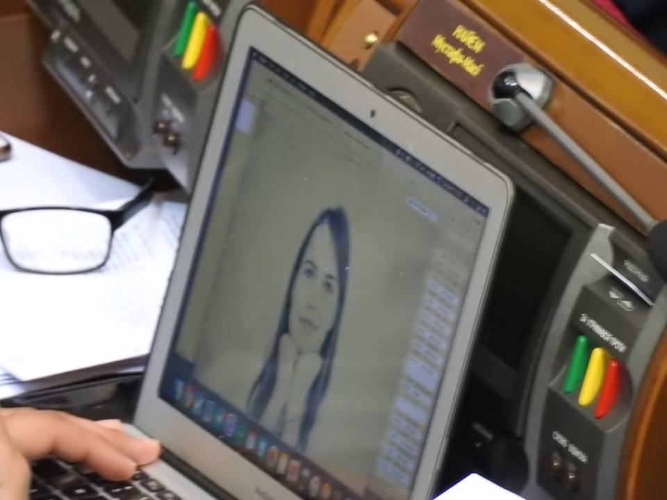 Про це повідомив журналіст Андрій Дзиндзя на своїй сторінці у Facebook, оприлюднивши світлини з залу парламенту, на яких Найєм обробляє у програмі Lightroom фотографії Злати Симоненко, яка є помічницею депутата з оточенння президента-втікача Януковича Олени Сотник.