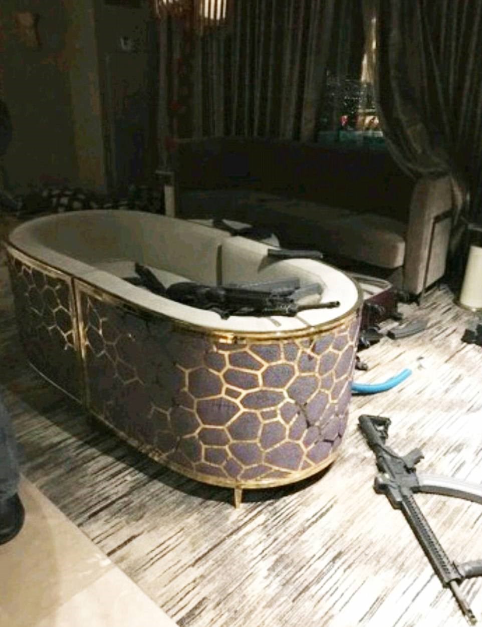 На одном из фото видно тело человека и лежащее рядом с ним оружие. В кадр также попало большое количество оружия и магазинов к нему, гильзы и топор, которым Пэддок, вероятно, выбил стекло из окна своей комнаты, чтобы открыть огонь по людям. В полиции заявили, что начали расследование по факту утечки снимков.