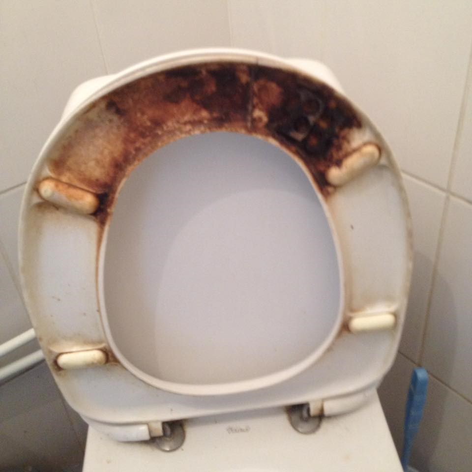 Она также добавила две фотографии, где виден жуткий матрац и черная крышка для унитаза.