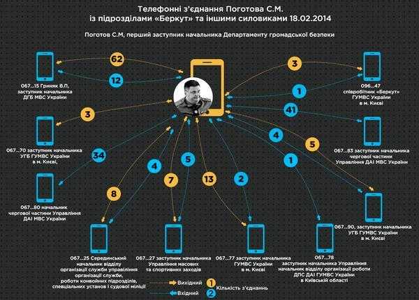 Телефонные соединения Сергея Поготова 18 февраля во время штурма Майдана. Предоставлено Департаментом спецрасследований