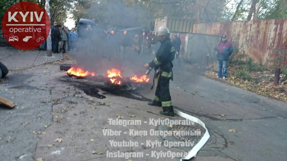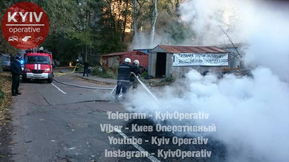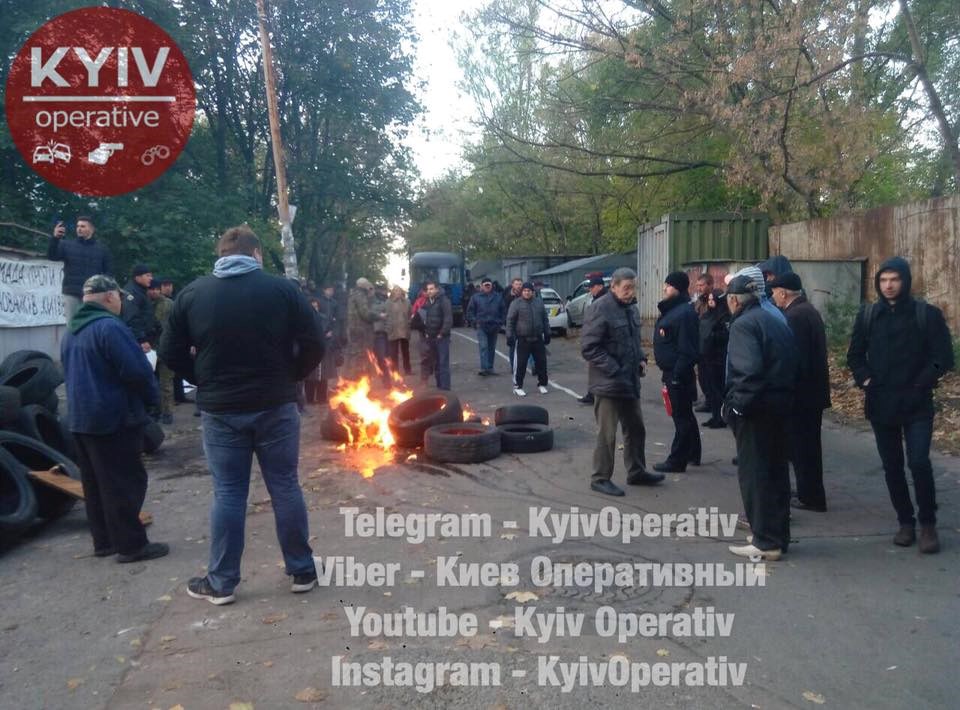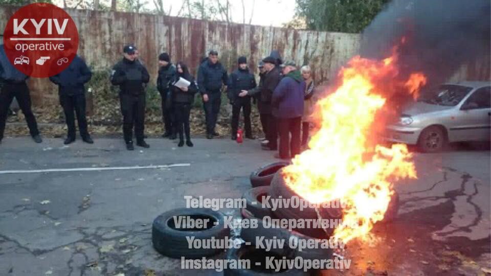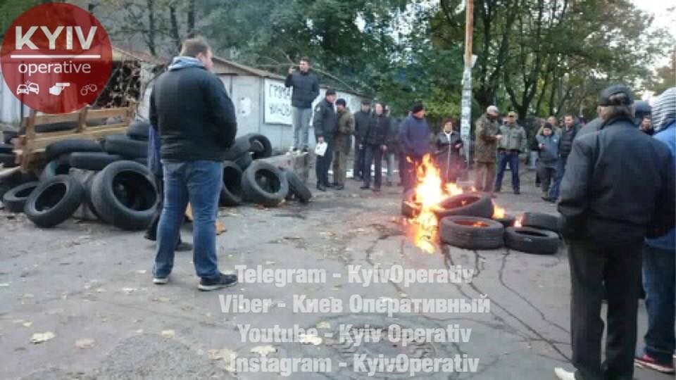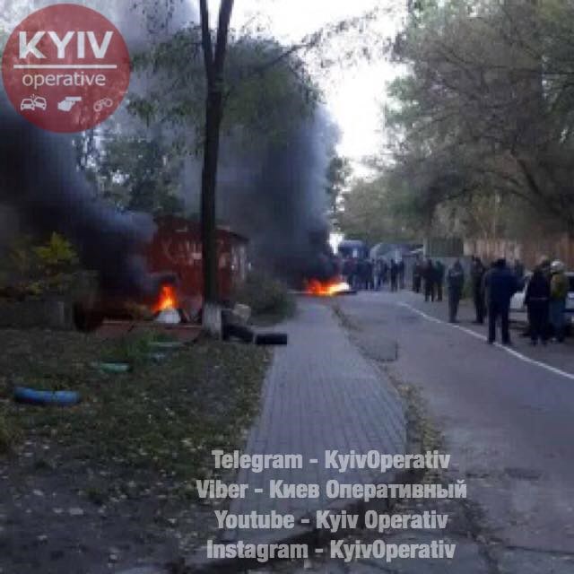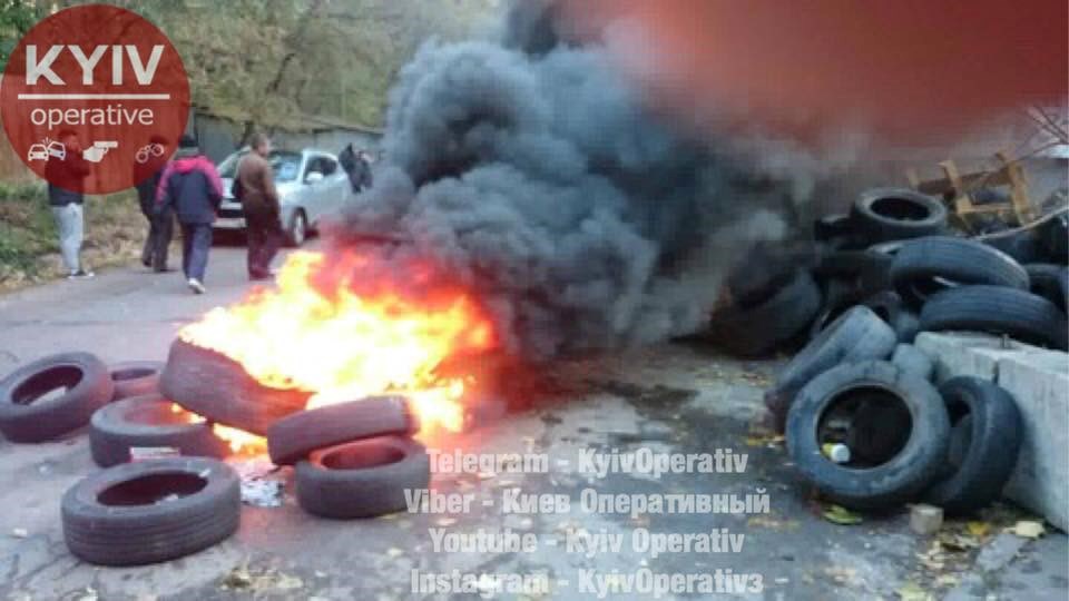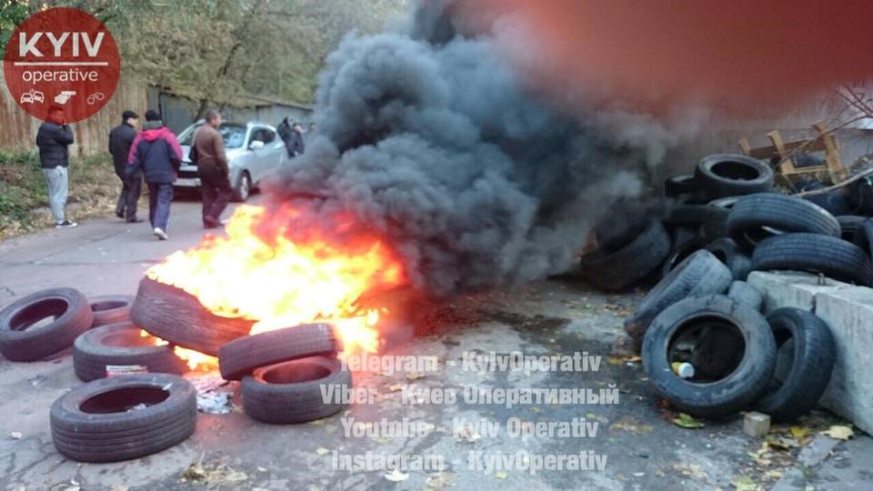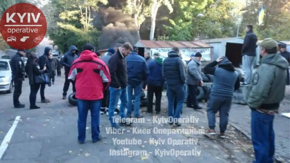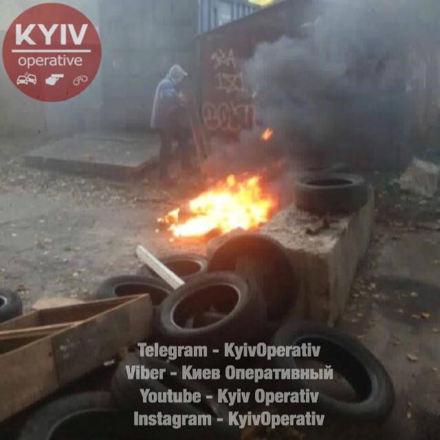 В Киеве в Шевченковском районе на улице Половецкой жители подожгли шины, протестуя против сноса гаражей.