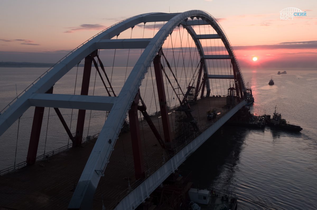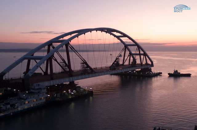 Отмечается, что в целом морская операция по установке арки в проектное положение займет до трех суток.