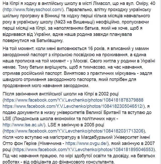 "На тот момент, когда мне исполняется 16 лет, я был вписан в мамин загранпаспорт с кипрским видом на жительство, а единственная наша прописка на тот момент - в Москве. Своего жилья у семьи в Украине нет. Поэтому родители решают, чтобы я временно, на время обучения, получил российский паспорт. Исключительно из практических соображений - для быстрого получения загранпаспорта, который нужен для продолжения моей учебы за рубежом", - сообщил депутат.