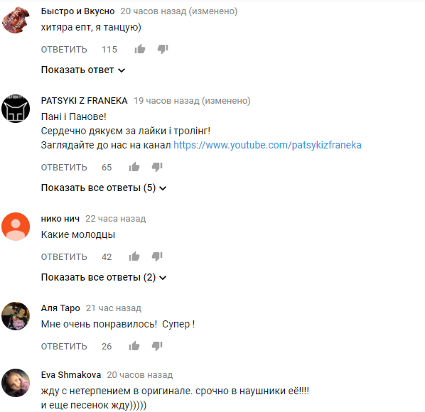 За один день видео выступления Patsyki z Franeka набрало более 120 тысяч просмотров и две тысячи лайков. Зрители также остались в восторге и в комментариях отмечают, что песня "VasЯ OMG - настоящий хит.