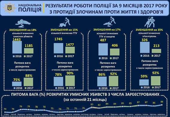 За 9 месяцев текущего года в Украине зафиксирован самый низкий за последние 10 лет показатель умышленных убийств и покушений.