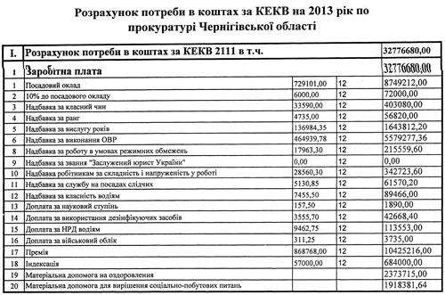Також можна передбачити, що бухгалтери виводили кінцеву цифру 2013 року, відштовхуючись від зафіксованої кількості працівників прокуратури та матеріальних потреб у 2012 році. Таким чином, потреби на 2014 рік будуть визначатися, враховуючи нову збільшену чисельність прокурорів.