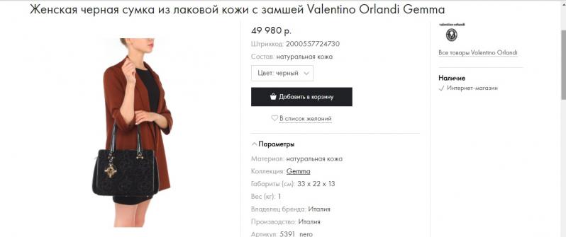 Как нам удалось узнать, эта сумка от VALENTINO ORLANDI. В Украине подобный женский аксессуар нам найти не удалось. Но в России похожая сумка стоит почти 50 тыс. рублей – это почти 25 тыс. гривен.