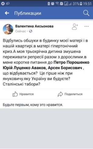 Так, представитель псевдо-общественной организации Валентина Аксенова заявила о проведенном у нее обыске, при котором, якобы, присутствовал трехлетний ребенок. Тем самым Аксенова подтвердила и сам факт обыска и то, что у правоохранительных органов есть основания для проведения следственных действий.