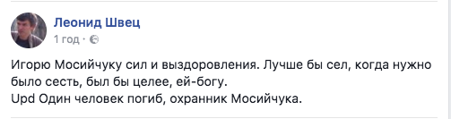 Народный депутат Дмитрий Линько в Facebook сообщил, что погиб охранник-помощник депутат Игоря Мосийчука.
