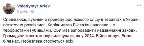 При этом все почти единогласно сходятся во мнении о том, что в убийстве просматривается «рука Москвы» и отмечают, что спецслужбы бессильны, а враг чувствует себя в Украине как дома.