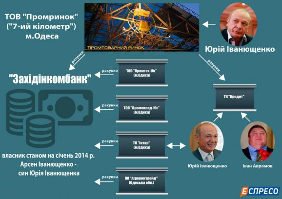 Судя по всему, за этим стоит еще один соратник Януковича — Юрий Иванющенко и его бизнес-партнер Иван Аврамов. Интересно, что схема очень напоминает ситуацию с детищами Руслана Цыплакова, ведь на момент января 2014-го года владельцем «Захидинкомбанка» был сын олигарха — Арсен Иванющенко.