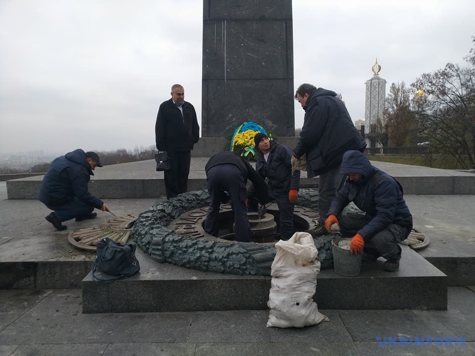 Ночью 7 ноября неизвестные залили цементом Вечный огонь в парке Славы у Могилы Неизвестному солдату в Киеве