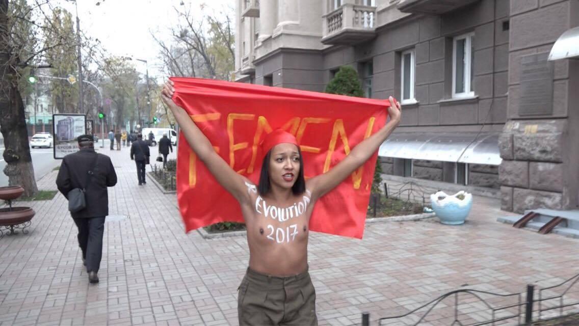 В этот знаменательный день Фемен призвал пролетариев свергнуть ненавистную династию царя Порошенко и цесаревича Гройсмана.