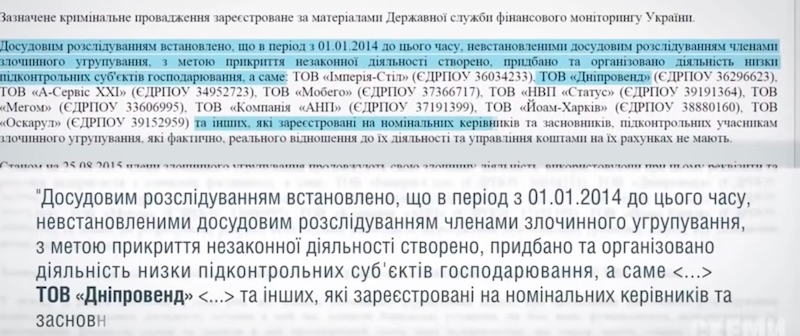 У фирмы «Днипровенд», которая в 2015 году выиграла тендер МВД на поставку рюкзаков, указан фиктивный юридический адрес в городе Днепр. По этому адресу такой компании не существует, в феврале 2013 года договор аренды был расторгнут, долги погашены. На момент выигрыша в тендере «Днипровенда», в самом МВД почти год уже продолжалось расследование деятельности этой компании как конвертационного центра.