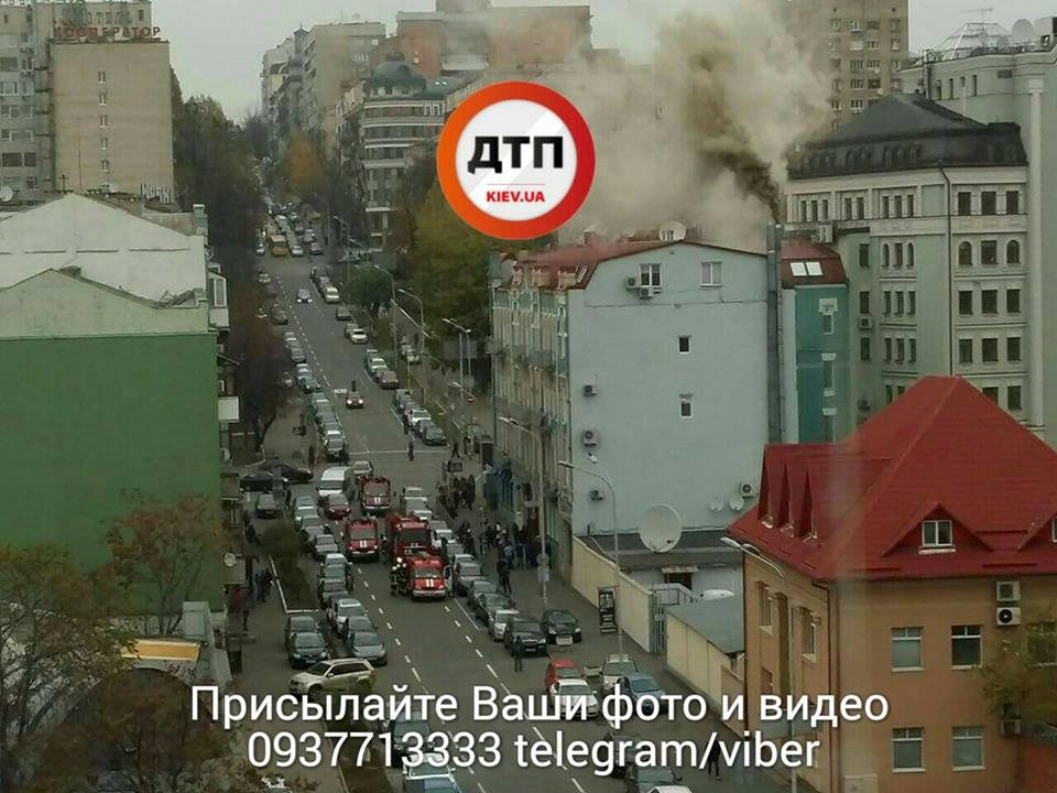 В центре Киева, на пересечении улиц Владимирской и Жилянской, произошел пожар в доме с большим количеством офисов и рестораном "Стейк Хаус".