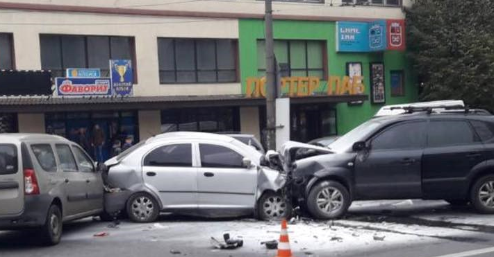 Свидетели происшествия утверждают, что Hyundai выехал на полосу встречного движения, где зацепил Nissan, а затем улетел во встречный Cherry. От мощного удара последнего отбросило на Renault.
