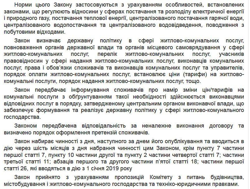 Верховная Рада проголосовала за законопроект 1581-д "О жилищно-коммунальных услугах", которые являются частью реформирования отрасли.