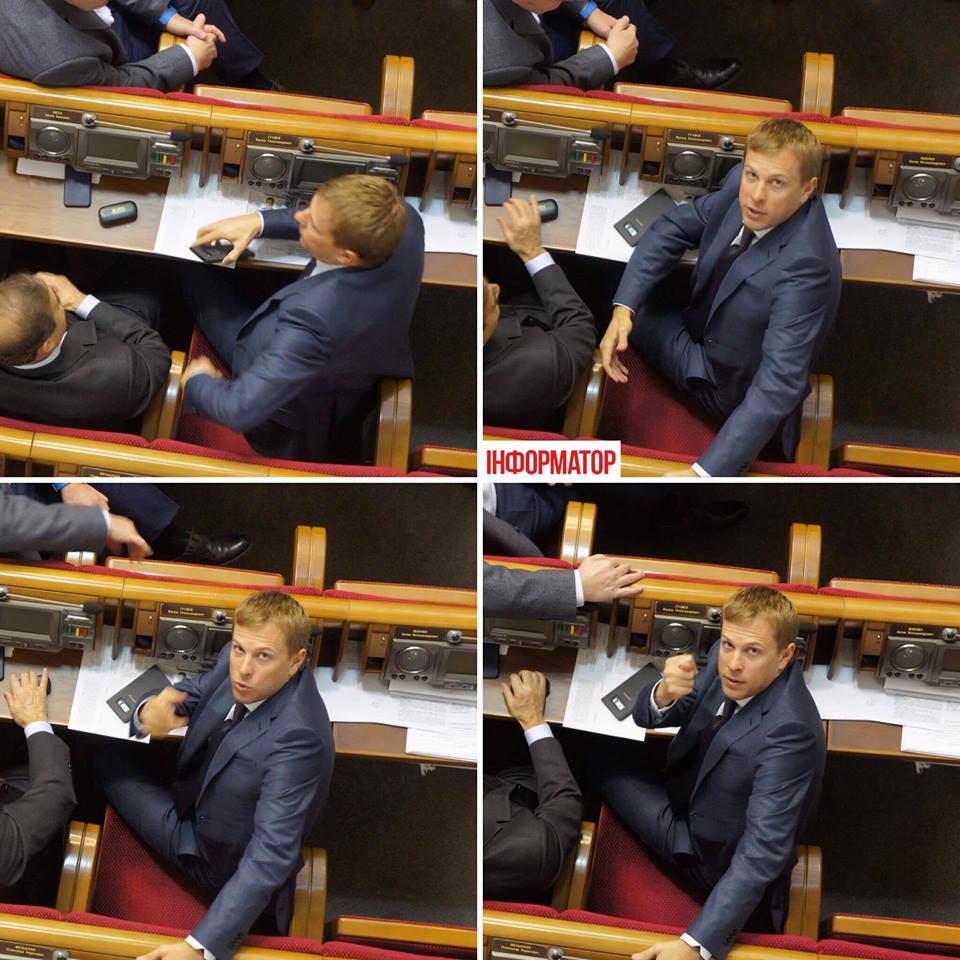 На обнародованном фото четко видно, что народный депутат показывает журналисту фигу.