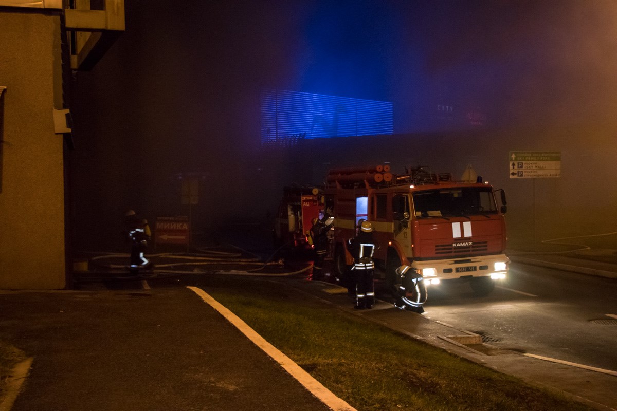 Едкий дым распространился на несколько километров. Кроме складов, загорелся паркинг, который находится под гипермаркетом.