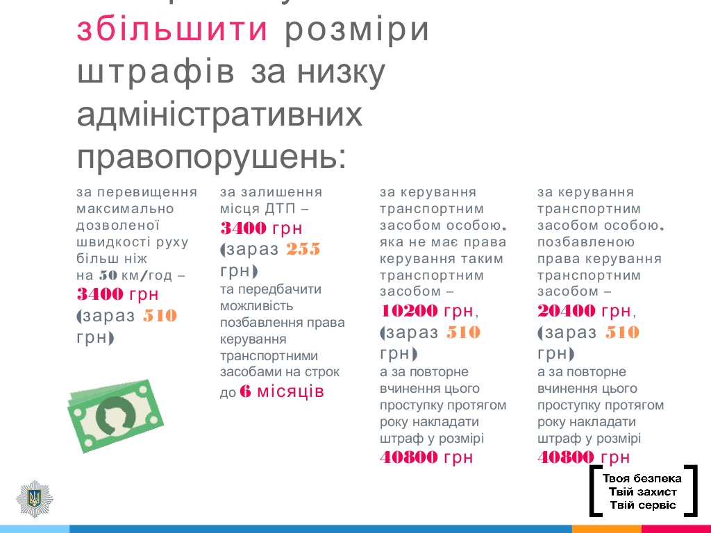 Так, за оставление места аварии министр предлагает налагать те же 3400 гривен штрафа. Впрочем, сейчас сумма этого взыскания и правда смехотворна: 255 гривен.
