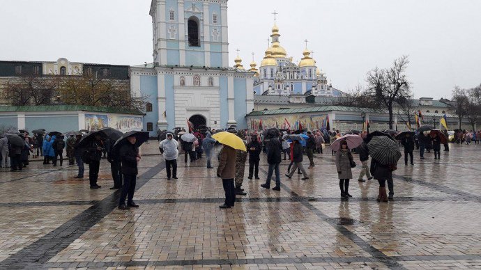 На Михайловской площади собрались участники «Марша возмущенных», анонсированного лидером партии «Рух новых сил», экс-главой Одесской ОГА Михеилом Саакашвили.