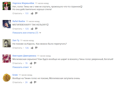Пользователи сети сразу же принялись высмеивать конфуз Могилевской и подчеркнули, что голос девочки отличается от голоса Тины Кароль.