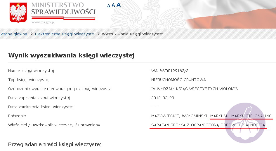 Інформація з реєстру нерухомості ПольщіДруга ділянка, на якій зводиться будинок у Марках поряд із будинком Співака, належить ТОВ “Сарафан”.