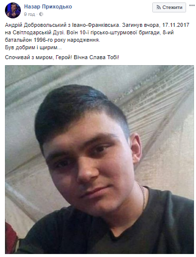 В пятницу, 17 ноября, в зоне проведения АТО погиб 21-летний боец АТО Андрей Добровольский из Ивано-Франковска.