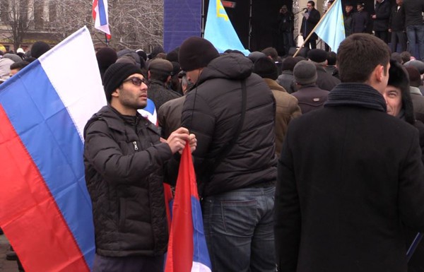 На пропутинском митинге в Симферополе скандалили и рвали плакаты