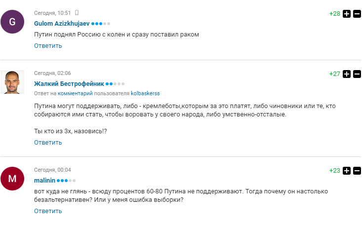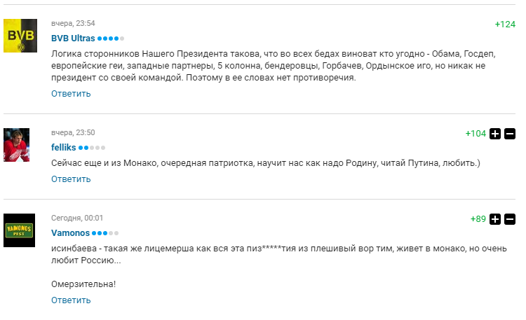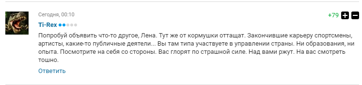 Такое унизительное поведение знаменитой легкоатлетки вызвало соответствующую реакцию в интернете. Болельщики возмущены поступком Елены и предлагают ей "встать с колен", считая такое пресмыкание перед президентом "омерзительным".