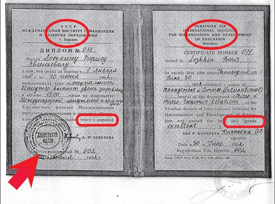 “Американський диплом” пана Ложкіна: без печатки Міністерства освіти, з помилками, на бланку УРСР, і виданий...у Харкові приватним підприємством. Це просто витвір мистецтва. Погляньте на нього уважніше (див. фото). “США” на практиці виявилися “УССР, г. Харьков” (бланк, за вказаними внизу даними, надрукований у Києві 21.05.91, ще до проголошення Незалежності). Притім диплом із номером “аж” 011 насправді не є дипломом. Ну, в тому розумінні, що його ми вкладаємо у те, яким повинен бути справжній документ про освіту. Це не диплом про освіту державного зразка, який навіть приватні, але справжні (!) виші отримують для своїх випускників від Міністерства освіти. Це просто надрукована за власним замовленням підприємства “корочка” із печаткою харківської філії згаданого “інституту”. І зміст її — зовсім інший, ніж у дипломах про здобуття вищої освіти. Вчитаймося: “Диплом... выдан... в том, что он... ПРОСЛУШАЛ КУРС ПО СПЕЦИАЛЬНОСТИ... Харьковского филиала...” Порівняймо це із записом у будь-якому справжньому дипломі про освіту “... ЗАКІНЧИВ... ДЕРЖАВНИЙ ІНСТИТУТ... ЗА СПЕЦІАЛЬНІСТЮ...” Є різниця? Є! Вона очевидна: у першому випадку маємо сертифікат про те, що людина прослухала якісь лекції, а в другому — державний диплом про закінчення вишу з успішним складенням іспитів і присвоєнням кваліфікації спеціаліста. Ось, для прикладу, 36-річна Наталія із Сум шукає роботу на сайті Rabota.ua. Інформацію про свої заняття в МІГРО жінка чесно вписала у рубрику “Курси, тренінги, сертифікати”... Що ж, тоді наступне запитання. Може, на початку 90-х він існував, але після років славетної історії ця поважна установа чомусь припинила діяльність? Наприклад, була об’єднана з іншим поважним вишом? Цей варіант теж не проходить. Річ у тім, що паперову документацію і пресу минулого у США впродовж останнього десятиліття оцифровують у неймовірних масштабах. Наприклад, якщо ви шукаєте згадку про своїх родичів у цій країні, то, сидячи за комп’ютером в Україні, можете знайти на відповідних сайтах квитки і портові списки пасажирів, які в’їжджали у США ще наприкінці ХІХ століття! Газети і журнали оцифровані не тільки великі, але й місцеві ”районки”. Однак жодної (!) статті чи бодай маленького інформаційного повідомлення про діяльність у минулому в США такого “міжнародного” закладу освіти пошукова система теж не знаходить. І жоден з американських закладів освіти, що мають філії за кордоном, не наводить у переліку їх інститут, який набито закінчував пан Ложкін. А знаєте, скільки треба скласти іспитів, щоб отримати псевдодиплом “Міжнародного інституту...” після цілих двох років “прослуховування курсу”? Аж один. У “дипломі” Бориса Ложкіна так і записано: “сдал выходной текст с оценкой...” Стоп! А як це — “выходной ТЕКСТ”? Розгублено кидаю погляд на англомовну сторінку “диплома” — там перед оцінкою стоять слова “final test”. TEST! Он воно що... Так званий диплом ще й з помилкою надруковано, і “тест” перетворився на “текст”. Зате “с оценкой “отлично”. Тепер — щодо англомовної версії назви закладу. International Institute for Humanization and Development of Education — так написана вона в дипломі. А в анкеті для Всесвітньої асоціації видавців газет і новин WAN-IFRA у графі “освіта” Борис Ложкін вписав близьку за звучанням, але іншу назву: International Institute of Humanization and Education Development (ну і USA додав, звичайно). Тобто навіть назви “америк