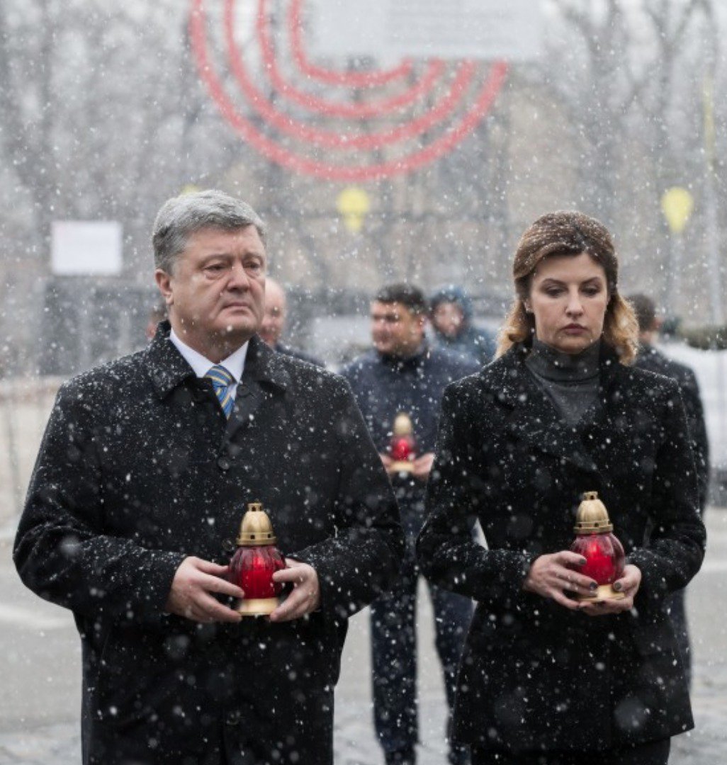 Президент Петр Порошенко вместе с супругой Мариной Порошенко приняли участие в церемонии памяти Героев Небесной Сотни.