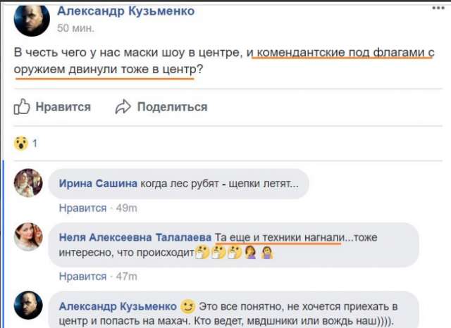 При этом СМИ сепаратистов попытались выяснить у военных, что происходит, однако, те не дали прямого ответа, заявив, что это якобы «учения».