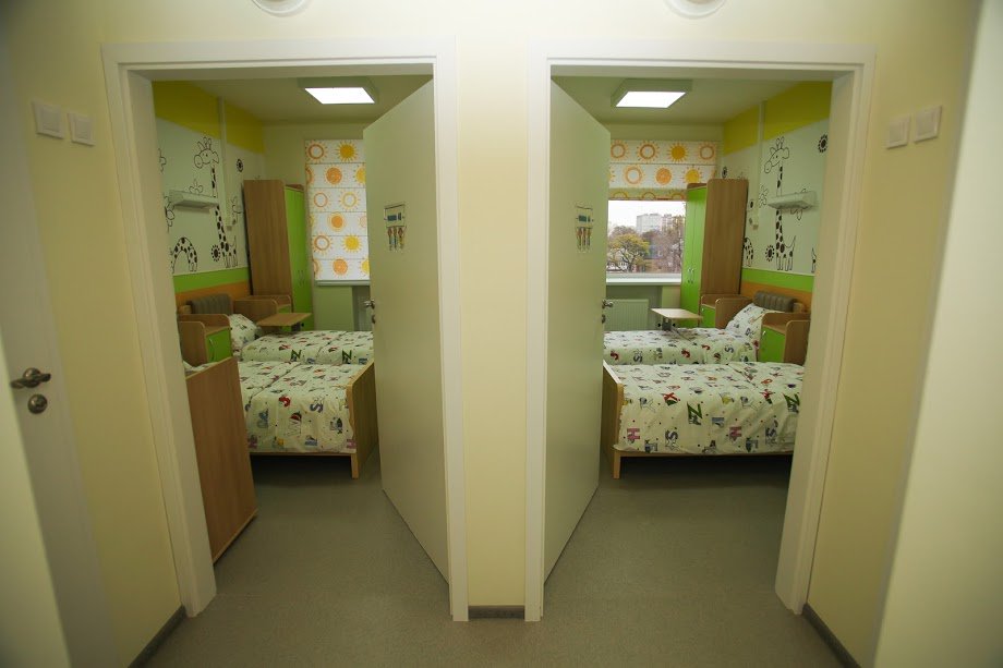 «Пять этажей, 45 мест – для постоянного пребывания малышей с мамами. Еще 15 мест – дневной стационар. Комнаты – яркие и разноцветные. На стенах – детские рисунки, — рассказал Валентин Резниченко. – В каждой палате – собственный санузел, поручни, кнопка для вызова медсестры, современная вентиляция, новая мебель. А для комфорта пациентов с нарушениями зрения все указатели в больнице дублируются шрифтом Брайля».