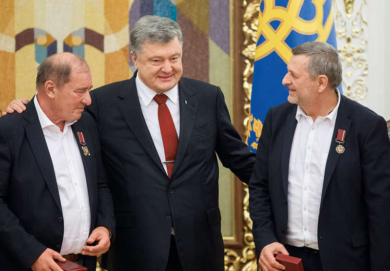Наконец дома. Освобождённые Ильми Умеров (слева) и Ахтем Чийгоз (справа) на встрече с президентом