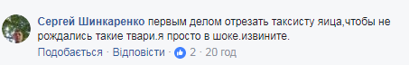 "Первым делом отрезать таксисту яйца, чтобы не рождались такие твари. Я просто в шоке. Извините", - написал Сергей Шинкаренко.
