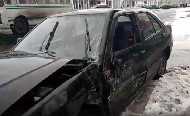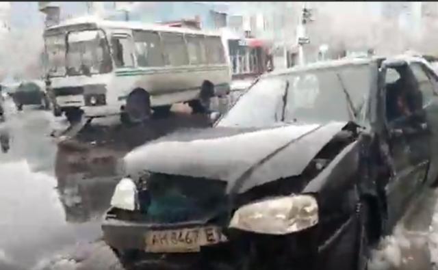 В оккупированной Макеевке женщина-водитель врезалась на легковом автомобиле в автобус, затем в магазин, после чего уехала с места ДТП.
