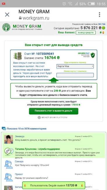 По данным СМИ, переходя по рекламной ссылке, пользователю предлагают зарегистрироваться и получить деньги.