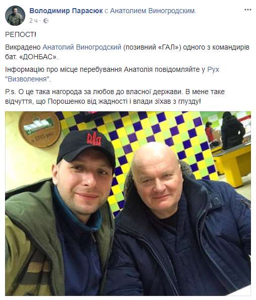 В воскресенье 26 ноября в Киеве был задержан бывший командир батальона Донбасс Анатолий Виногродский (позывной Гал).