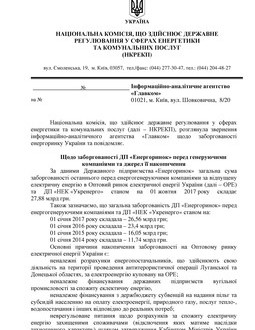 По данным ГП «Энергорынок», общая сумма задолженности рынка перед энергогенерирующими компаниями и «НЭК «Укрэнерго» на 1 октября 2017 года составляет 27,88 млрд грн. По состоянию на: