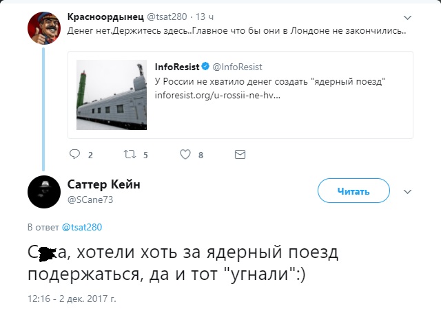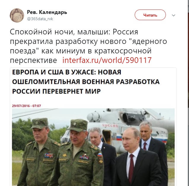2 декабря появилась информация прекращении разработки боевых железнодорожных ракетных комплексов в России, что рассмешило соцсети.