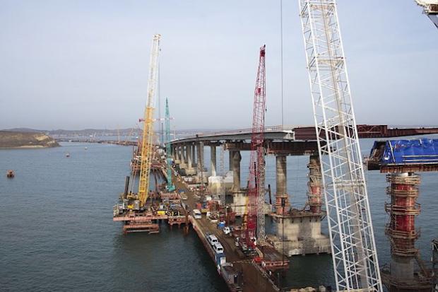 В окупованому Криму будівельники встановили всі опори автодорожньої частини моста через Керченську протоку, який зв’яже півострів із Росією. Як повідомляє російське видання "Комсомольская правда", будівельники обіцяють, що перші автомобілі поїдуть через Керченську протоку не в грудні 2018 року, як планувалося спочатку, а вже в травні.