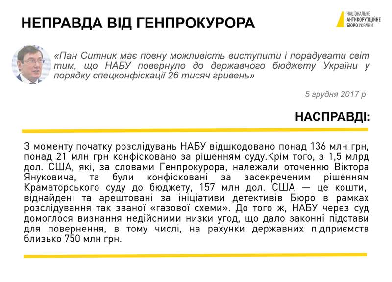 В пресс-службе антикоррупционного ведомства предоставили опровержения заявлений Луценко, с целью "предотвратить дальнейшие манипуляции".