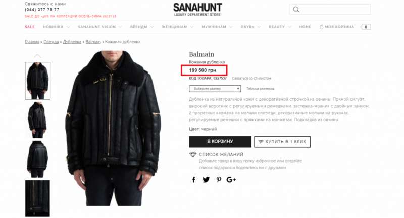А в сентябре этого года «Саргасс групп» умудрился завезти в Украину три мужские дубленки Balmain (артикул W7H2049P071), задекларировав их совокупную таможенную стоимость также на уровне 240 долларов за единицу. В магазине Sanahunt каждую такую дубленку скромно оценили в 199,5 тыс. гривен, или в 7,3 тыс. долларов по нынешнему курсу. Другой вопрос, что аналогичную дубленку на интернет-сайте в той же Германии предлагают чуть более чем за 100 евро со скидкой (очевидно, что речь не идет об оригинале), что вполне сопоставимо с уровнем цены, задеклированной в Украине. И с учетом подобных особенностей ввоза и декларирования по нереально низким ценам люксовых брендов, поступающих затем в Sanahunt, у клиентов этого магазина вполне могут возникнуть вопросы об аутентичности продаваемых товаров к ее владелице.
