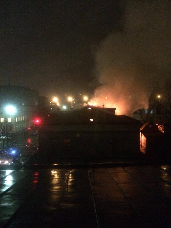 «Пылает здание-памятник архитектуры на углу Ильинской и Волошской! Работают пожарные! Похоже, так называемые хозяева дома его таки подожгли. Горит на чердаке», — говорится в сообщении группы «Киев, Подол» в Facebook.