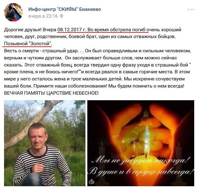 Агарков Андрей Валерьевич "Золотой" (Енакиево, 31/05/84) погиб 08/12/17 #груз200 pic.twitter.com/yGqL36a7Ru
