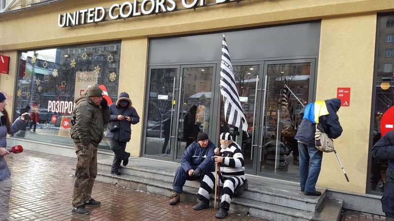 Так, среди протестующих можно увидеть человека в тюремной робе, людей с флагами Украины, а также мужчину в маске экс-президента Украины Виктора Януковича. В руках он держит табличку с надписью: «Юра, а я?».